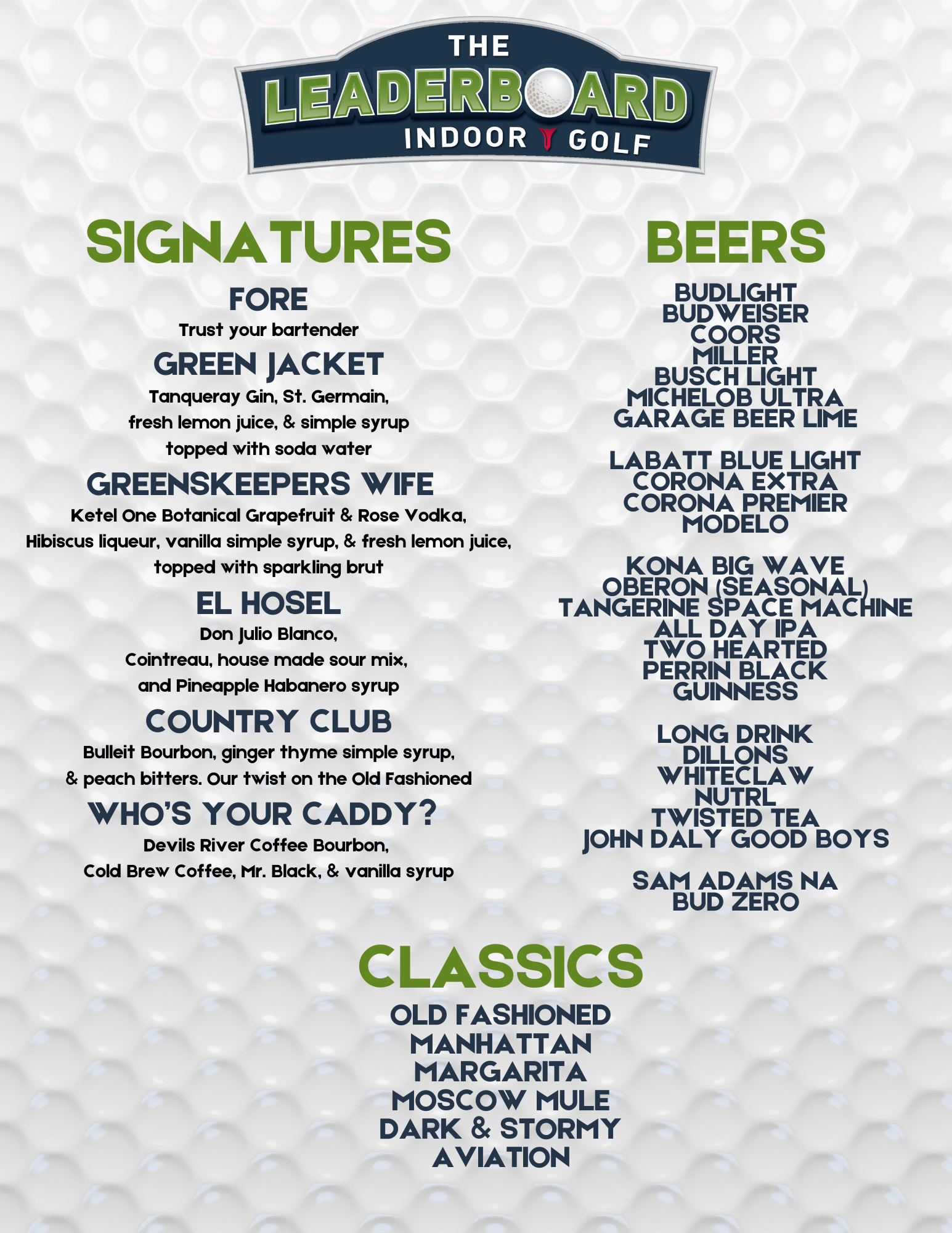 You don't have to wait for the perfect weather to enjoy a game of golf. The Leaderboard Indoor Golf is an indoor golf facility located in Grand Rapids, MI. We offer guests full-service treatment with the latest golf simulation technology. We offer 4k golfing simulation, craft cocktail beverages & more. Pick from any of our top-of-the-line courses, from putt-putt to PGA courses!